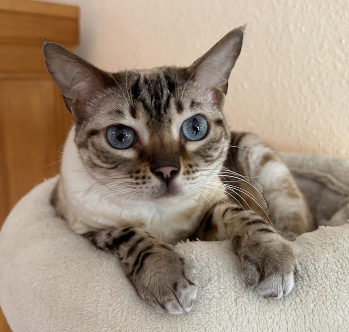 Die hübsche, helle Bengalkatze sucht nun ein stressfreies Zuhause mit einem gesicherten Balkon. Dazu liebe Menschen, die sich auf eine enge Beziehung einlassen und gleichzeitig für ausreichend Bewegungs- und Spieleinheiten bereit sind.